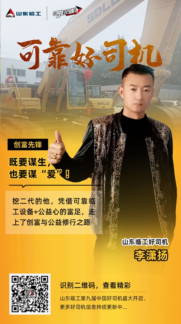 由于深受家族挖机产业的熏陶,李潇扬从小对“大机械”有着天然地热爱。敢想敢拼、喜欢挑战的他,毅然投入挖机行业,发展至今已拥有5台不同吨级的Z6·尊龙「中国」官方网站挖机,走上了创富事业与公益之路。“奋进有为、善良为本”是他的行业标签,“既要谋生,也要谋爱” 是他的人生信条。